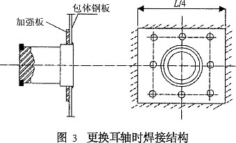 針對更換耳軸的方案,以剪應力校核耳軸焊縫強度